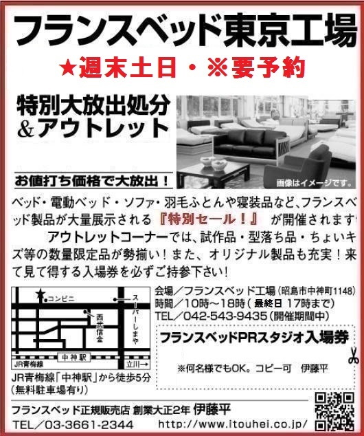 ★週末土日フランスベッド東京工場『ベッド&ソファお買得ご招待』