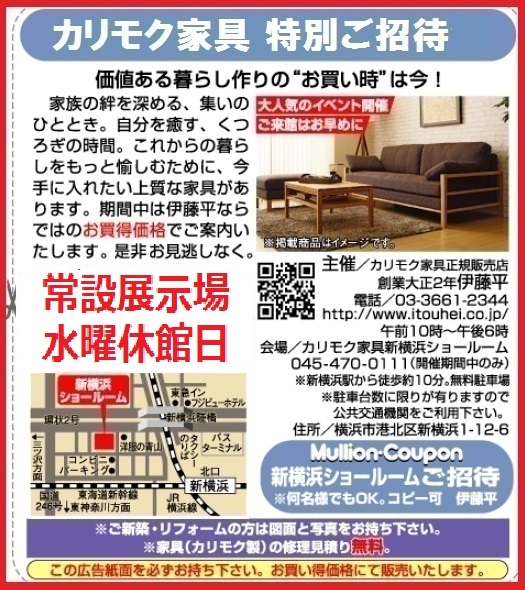 ●カリモク家具販売株式会社では、新横浜ショールームにてカリモク家具『特別ご招待』 をさせていただきます。メーカー展示場ならではの豊富な品揃えで、