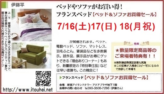 ●フランスベッド株式会社では、『ベッド&ソファお買得セール!』 を開催致します。期間中はメーカーならではの豊富な品揃えで、ベッド、