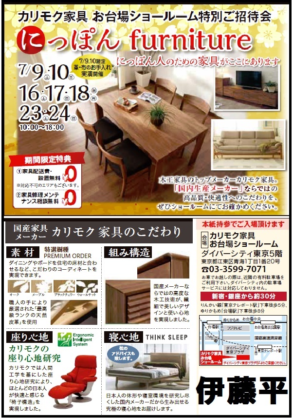 ★7/23(土)24(日)カリモク家具 お台場ショールーム『ご招待会』